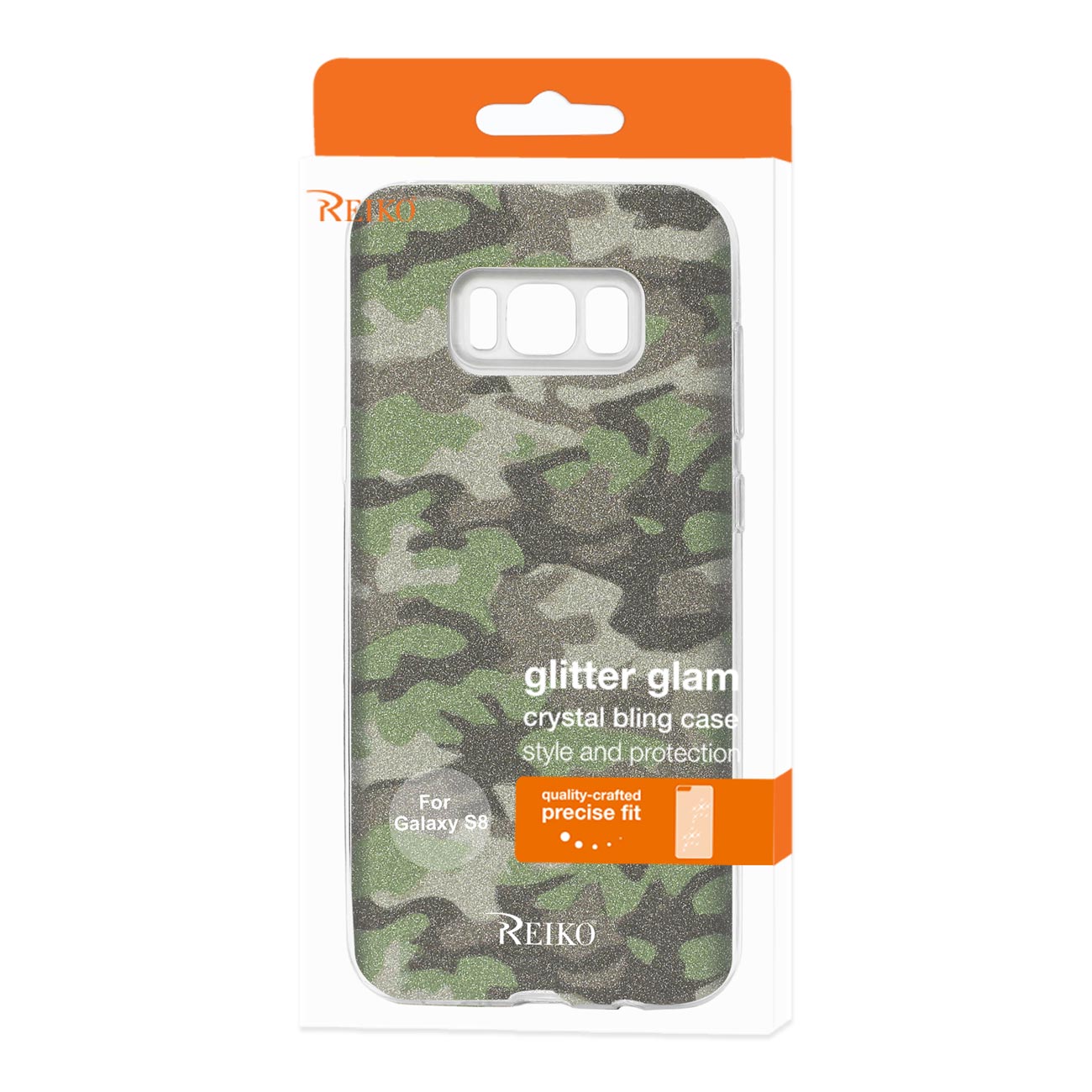 Made of hybric material combined TPU with polycarbonate, to give your phone effective protection against impact and shock. Loads of shimmer sparkle in camouflage design makes your phone glamorous. Transparent glitter coated inlay with smooth finish. Precise cut-outs make full access to all buttons, keys and ports. This phone model is also known as SAMSUNG GALAXY S8/ SM-G950.
