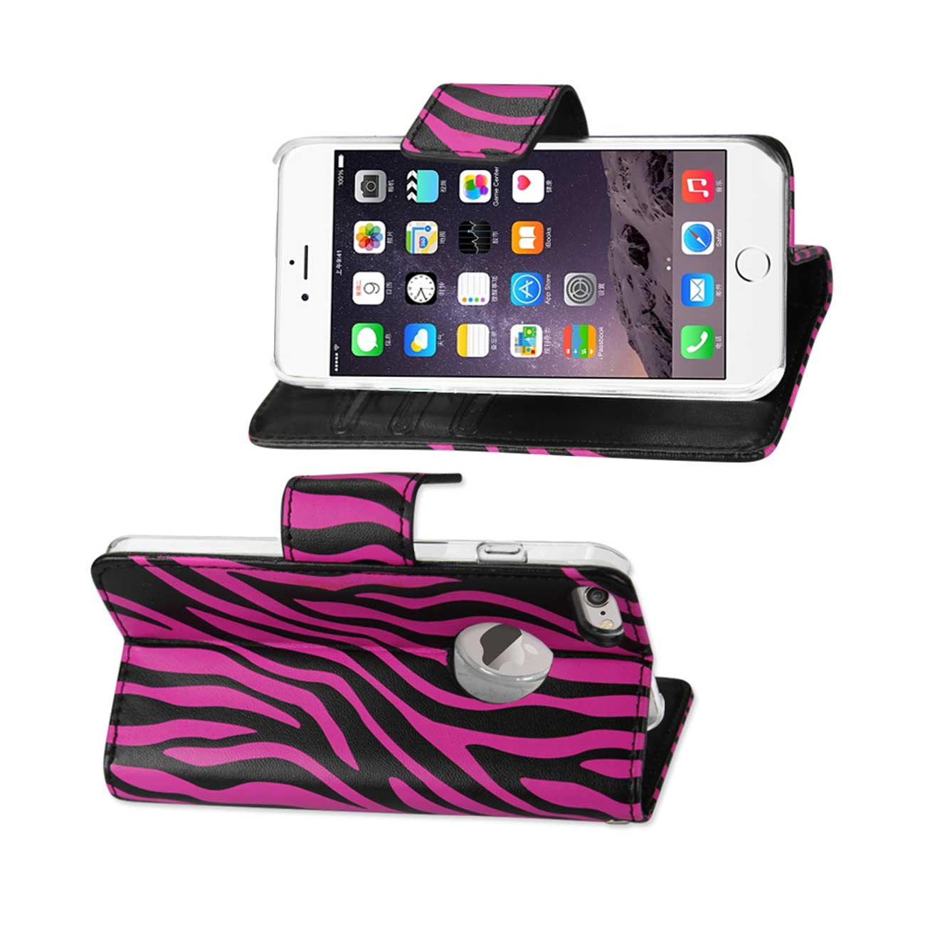 Beautiful synthetic leather with zebra print. Three side pockets for credit cards, business cards and other daily must-have items. The free stand function makes you watch videos or pictures In an easy way. Secure magnetic flap to keep case closed and your phone scratch-free. Able to fit In pouches, bags or any other small pocket spaces. Quality-crafted for precise fit and easy operation. Complete and stylish protection with full access to all ports, buttons, and camera. This phone model is also known as iPhone 6 Plus/ iPhone 6S Plus.