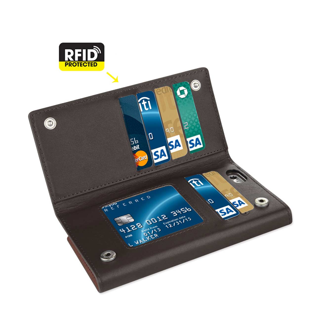 IPHONE 6 PLUS GENUINE LEATHER RFID WALLET CASE IN UMBER
