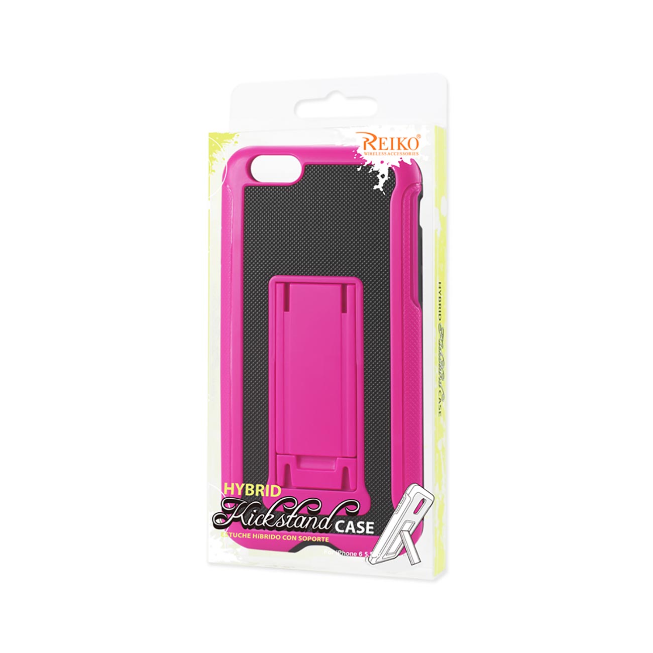 IPHONE 6 PLUS HYBRID HEAVY DUTY CASE WITH VERTICAL KICKSTAND IN BLACK HOT PINK