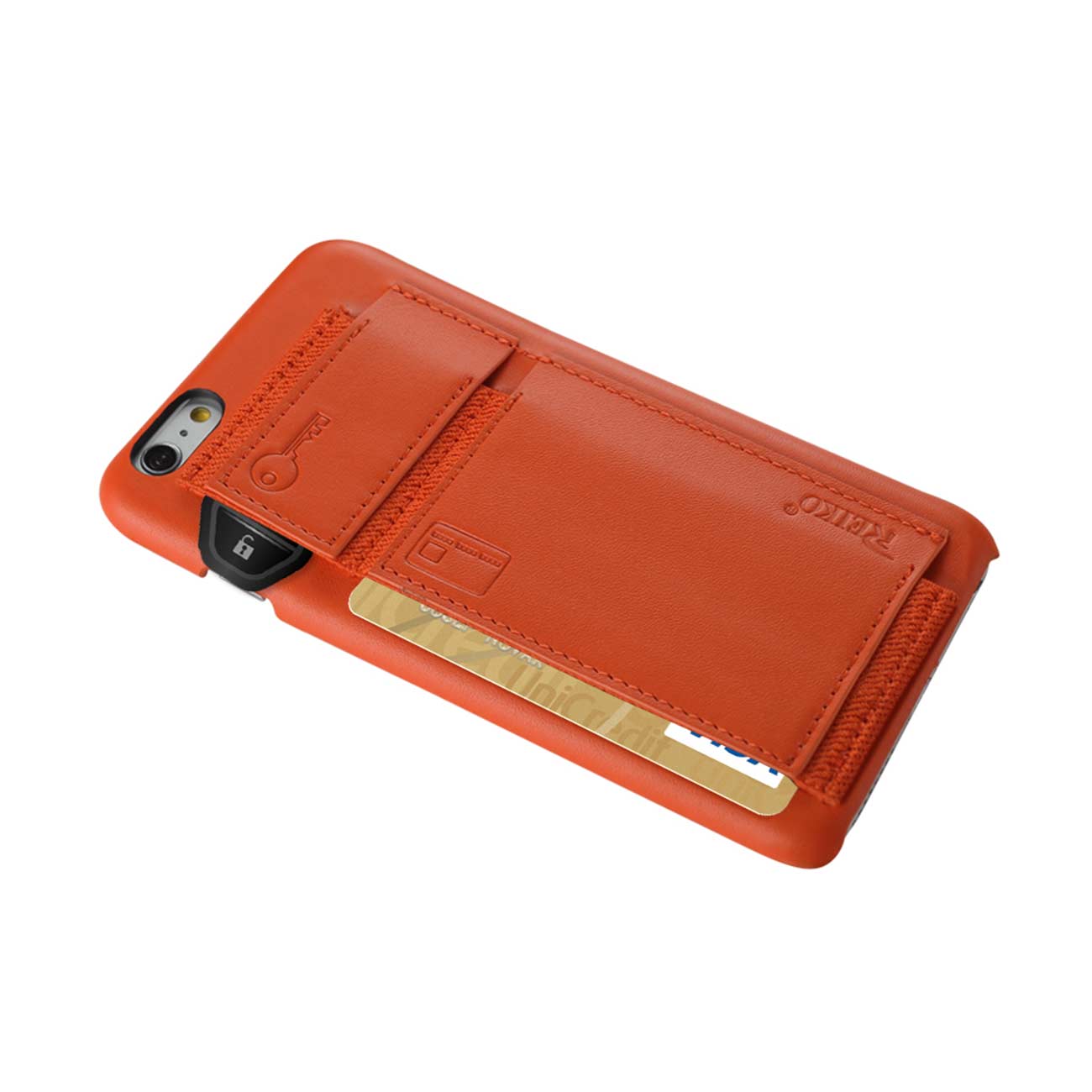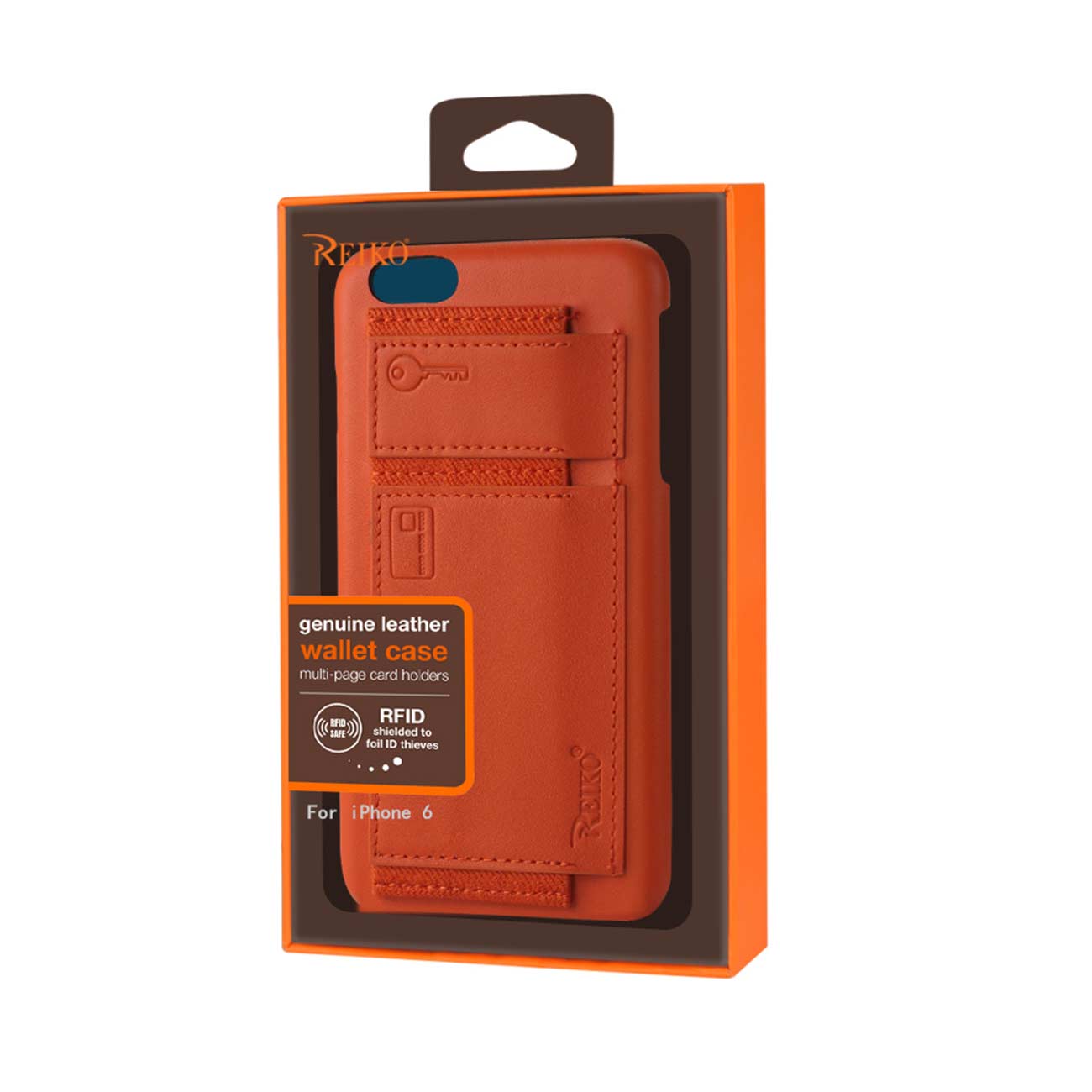 IPHONE 6 RFID GENUINE LEATHER CASE PROTECTION AND KEY HOLDER IN TANGERINE