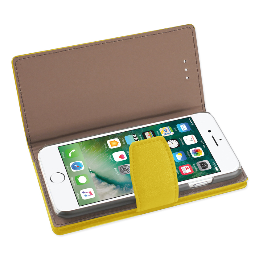 IPHONE 7 SYNTHETIC BULLHIDE LEATHER WALLET CASE WITH RFID CARD PROTECTION IN YELLOW