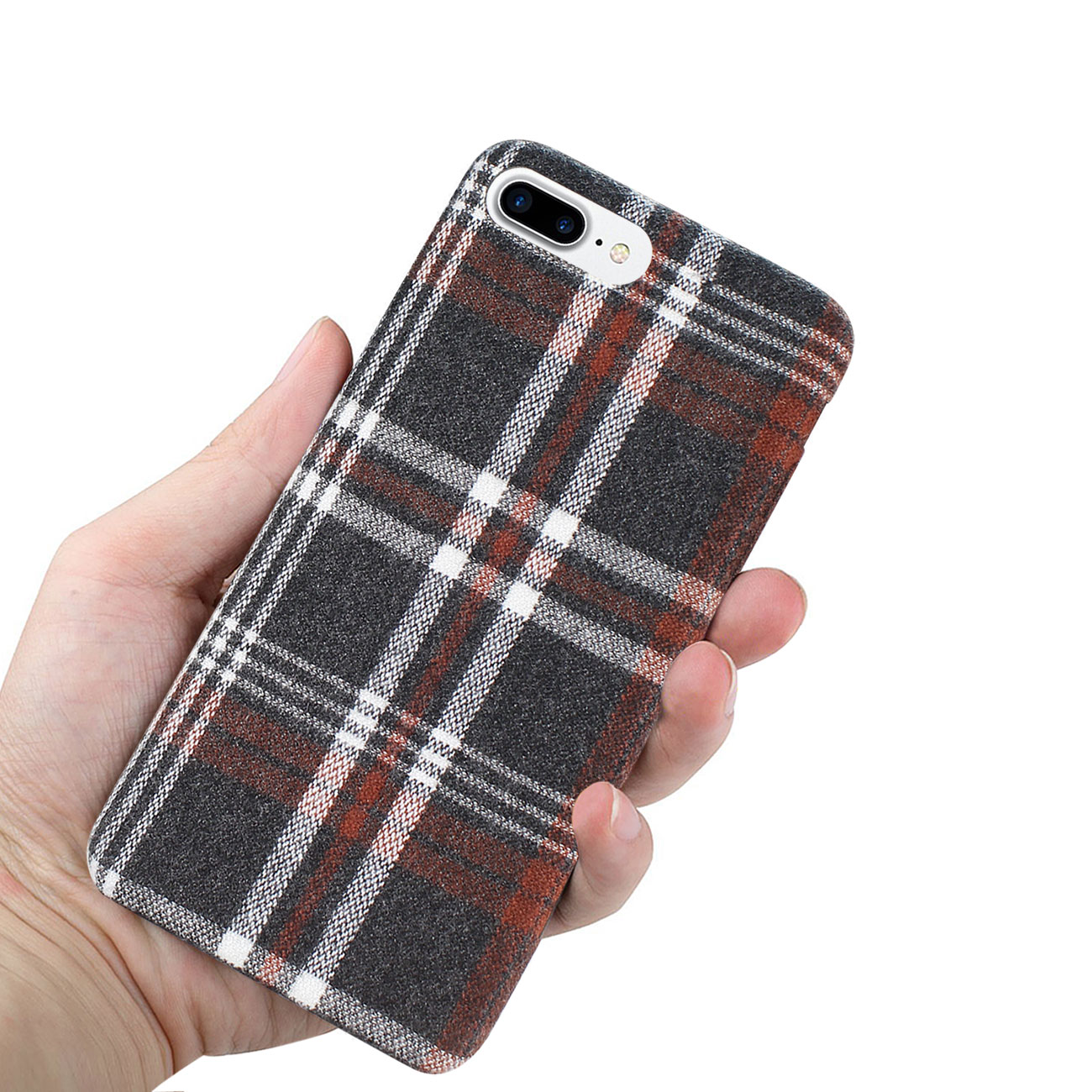iPhone 8 Plus Checked Fabric In Brown