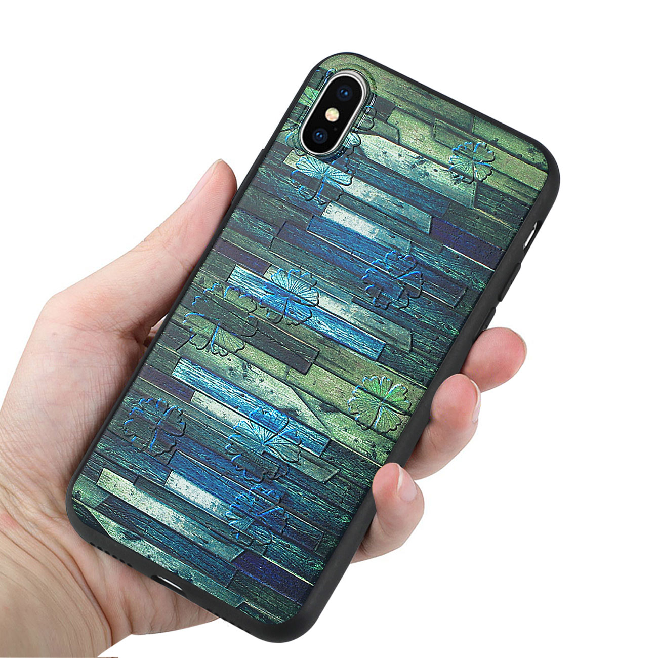 IPHONE X EMBOSSED WOOD PATTERN DESIGN TPU CASE WITH MULTI-LETTER