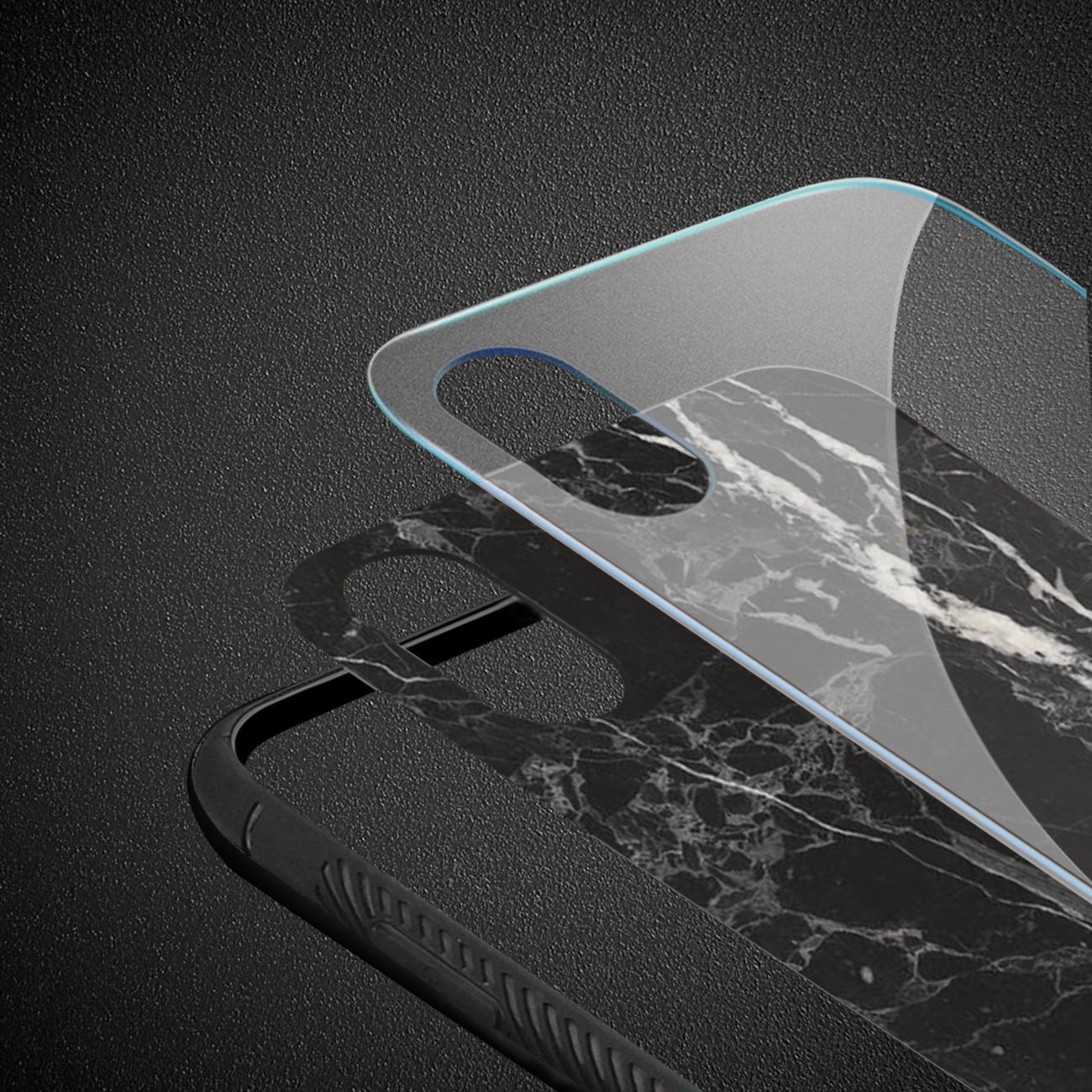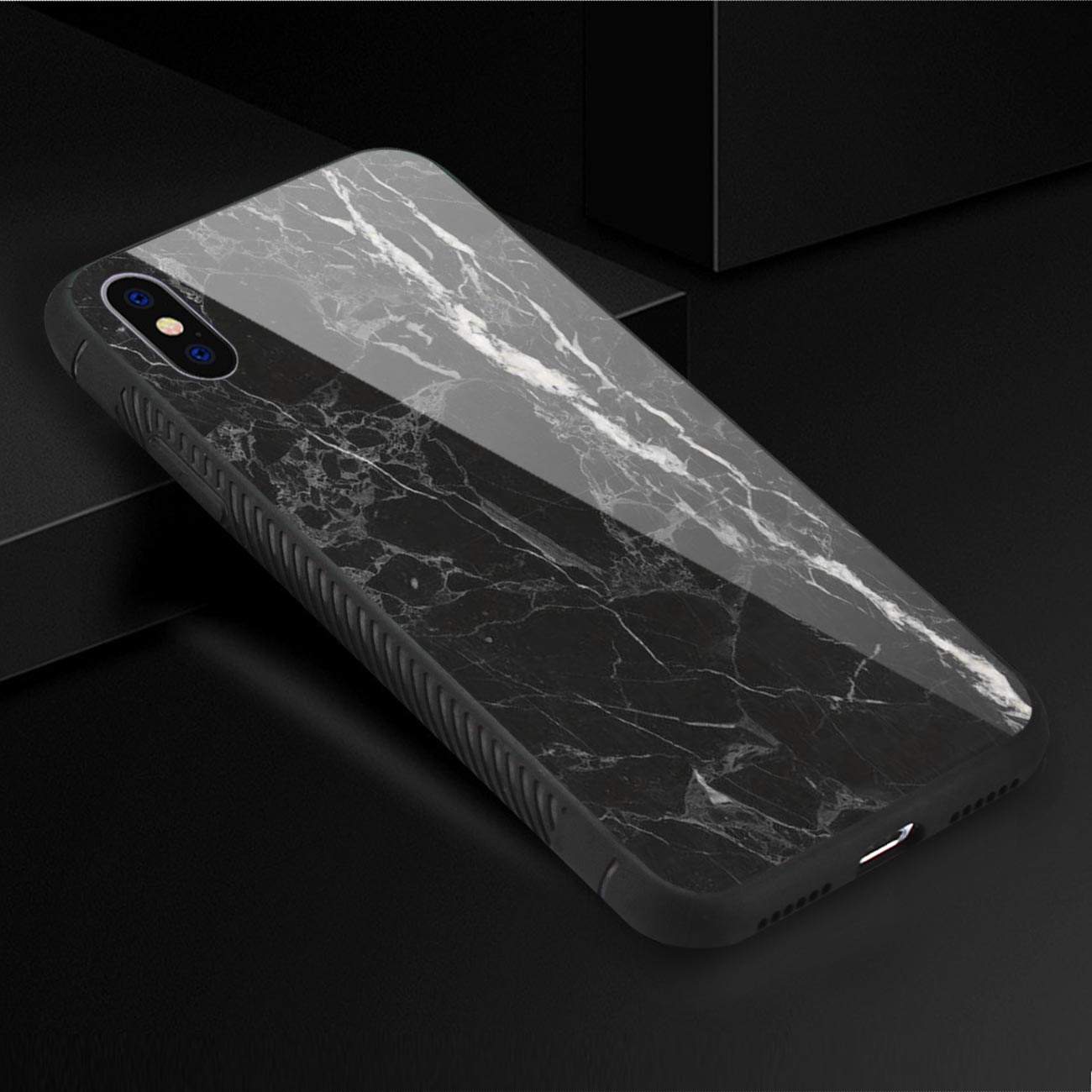 iPhone X/iPhone XS Hard Glass Design TPU Case With Black Marble