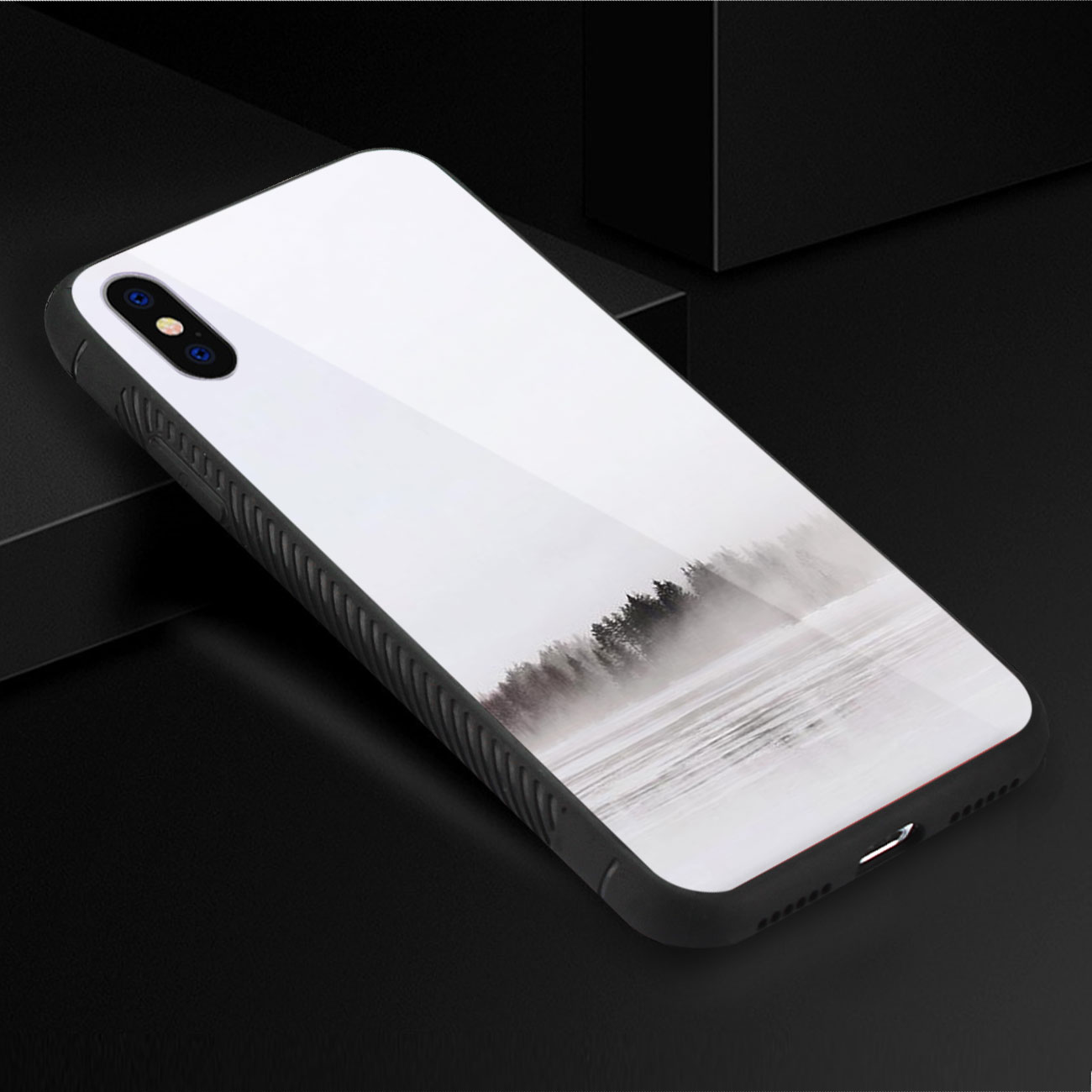 iPhone X/iPhone XS Hard Glass Design TPU Case With Lake Scene