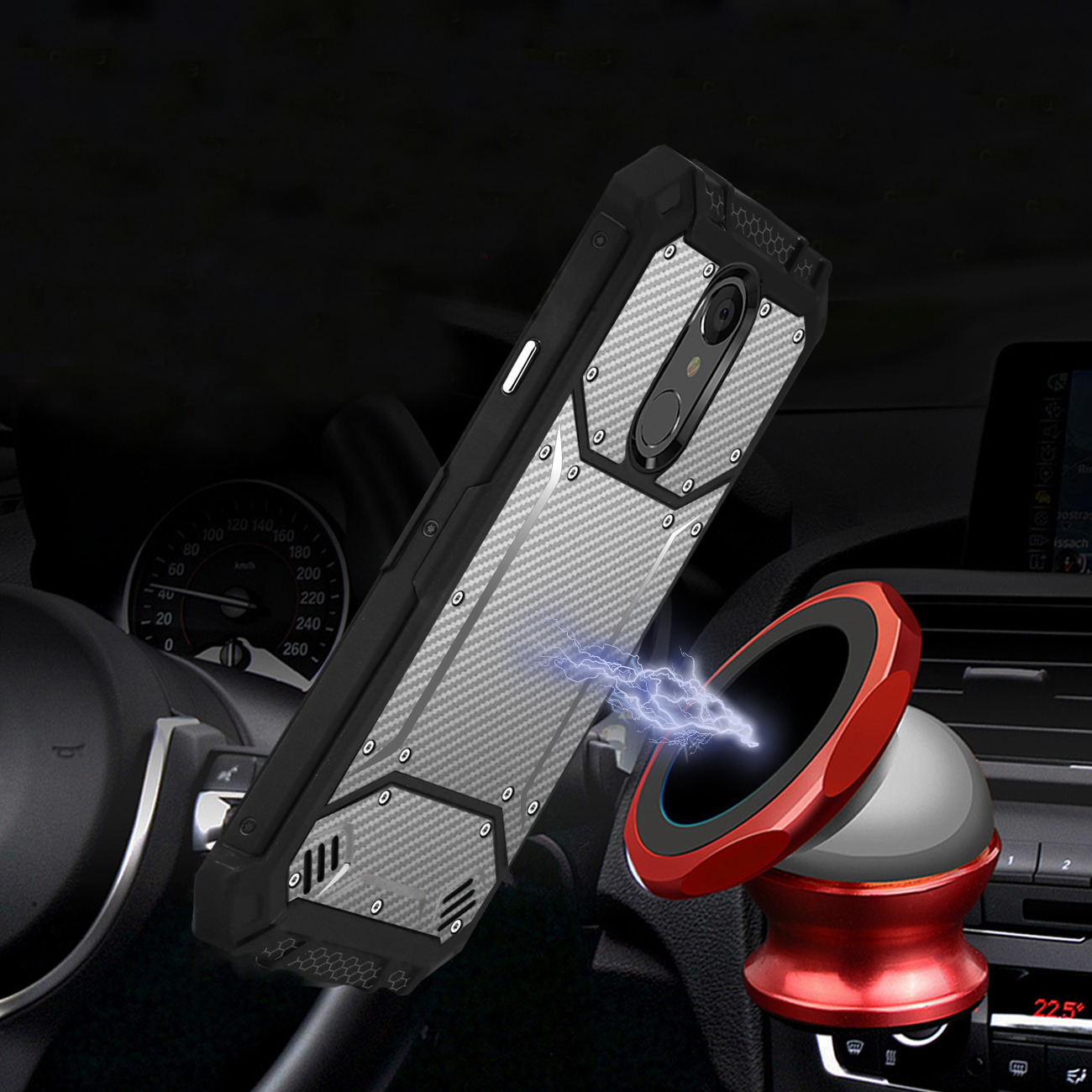 Using pure metallic front cover: front cover stainless steel casting, abrasion resistance, metallic simple sense is dye-in-the-wood Free screws to install: simple plug-in design, no screws trouble. Providing shock absorbing, anti-scratches and shatterproof with soft comfortable touch feeling.All in one shell design, avoid the effect of metal forming closed signal, at the same time offer you convenience the movie entertainment and business office.Four superior protection: stainless steel front housing, stainless steel mounting frame, hard tpu protection frame, stainless steel X back fork design stainless steel.Exclusive invisible built-in magnetic metal plate designed phone protector. easy to connect and remove the phone from the magnetic car mount & holder by one hand when driving.