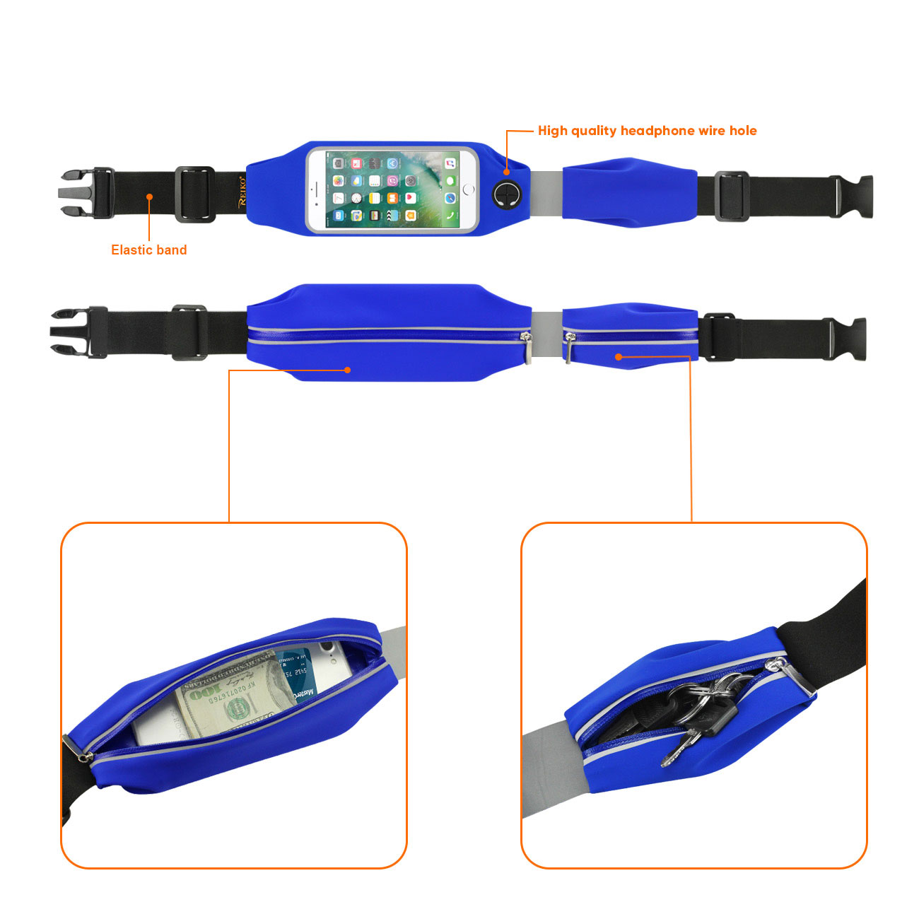 LED sport running belt waist packs with 2 pockets with touch screen window bag for universal 5.0 in devices,Use on your arm wrist, ankle or attached to running belt,Touch screen compatible & phone holder while you run, or workout: you can now see the run stats, change music or answer a call without stopping,Made out of sweat proof foam padding so your belongings stay dry at all times,Available two pockets for storing your money id, credit cards, keys and other essentials,Enjoy your run without fear of damaging or losing anything,Compatible with iPhone 6/ 6S/ iPhone 7/ LG Aristo/ LG K20 V and etc.