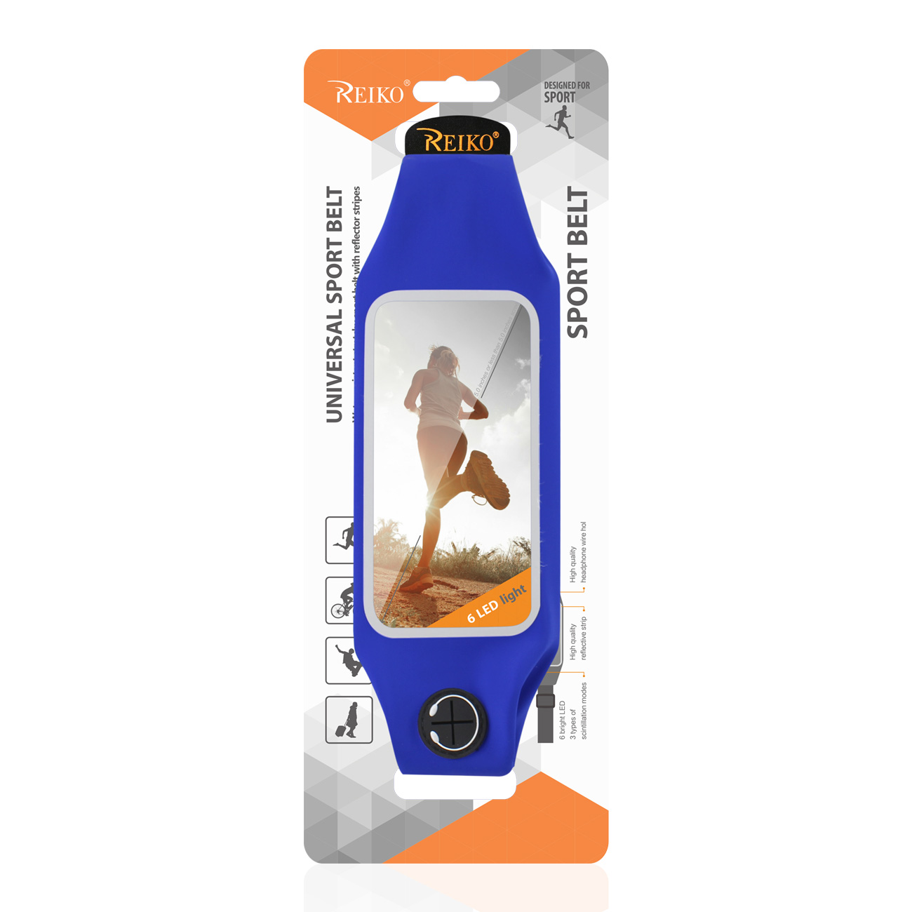 RUNNING SPORT BELT FOR IPHONE 7/ 6/ 6S OR 5 INCHES DEVICE WITH TWO POCKETS AND LED IN BLUE (5×5 INCHES)