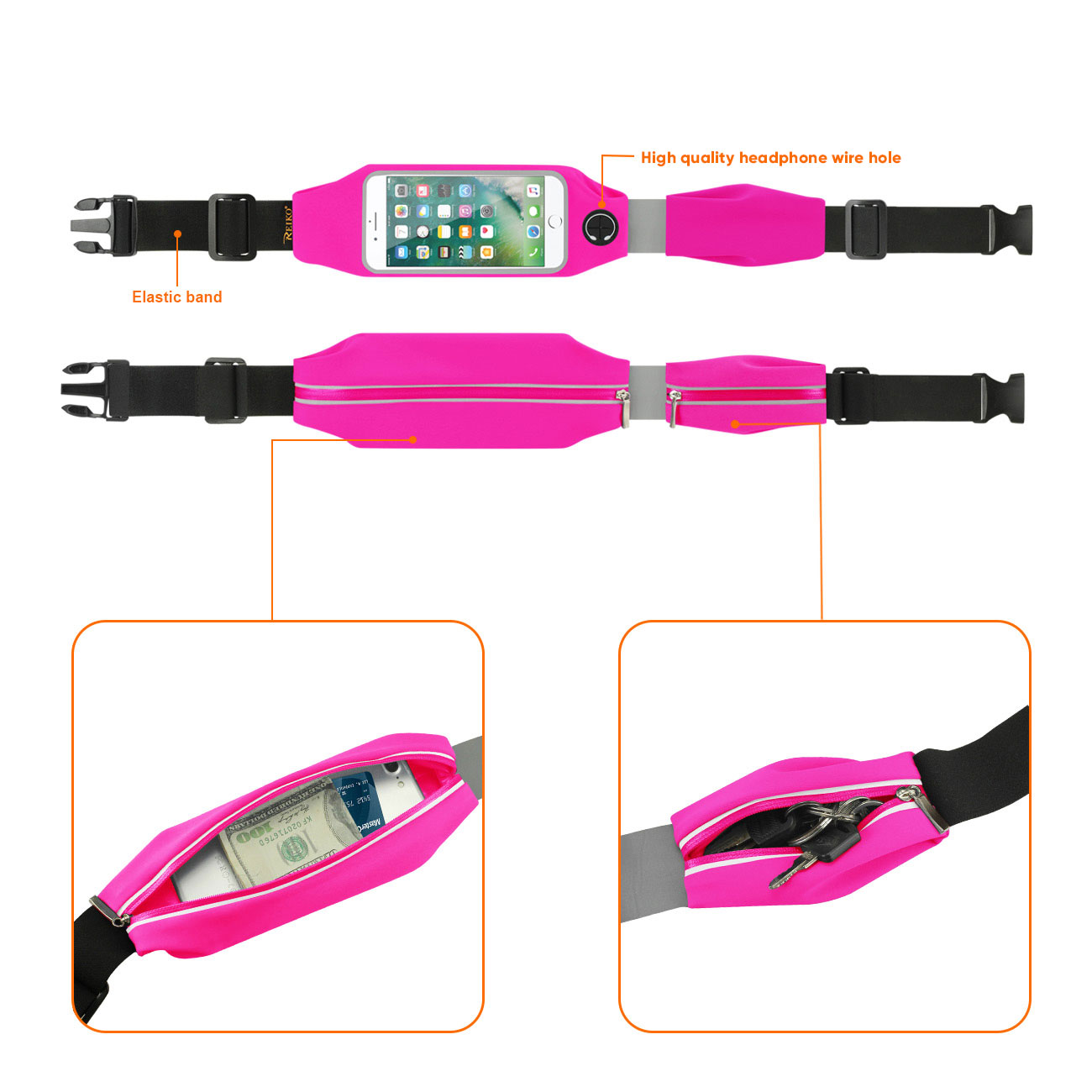 LED sport running belt waist packs with 2 pockets with touch screen window bag for universal 5.5 in devices. Use on your arm wrist, ankle or attached to running belt. Touch screen compatible & phone holder while you run, or workout: you can now see the run stats, change music or answer a call without stopping. Made out of sweat proof foam padding so your belongings stay dry at all times. Available two pockets for storing your money id, credit cards, keys and other essentials. Enjoy your run without fear of damaging or losing anything. Compatible with iPhone 7 Plus/ 6 Plus/ 6S Plus/ Samsung Galaxy J7 V/ LG X Power 2 and etc.