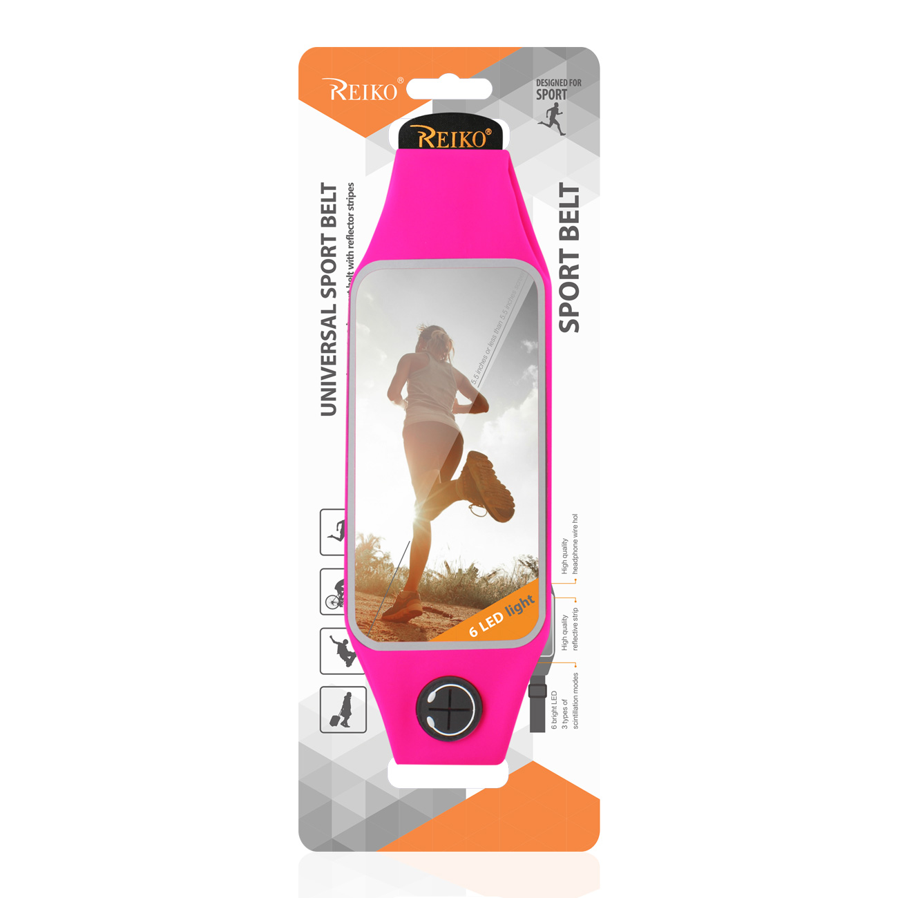 RUNNING SPORT BELT FOR IPHONE 7 PLUS/ 6S PLUS OR 5.5 INCHES DEVICE WITH TWO POCKETS AND LED IN PINK (5.5×5.5 INCHES)