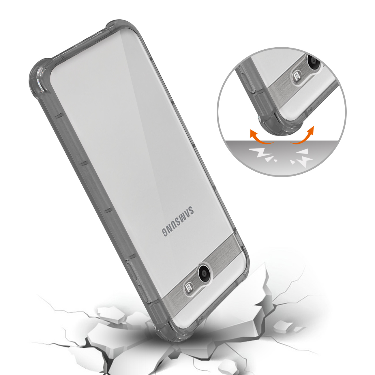 Made of crystalline bumper on the edges and air cushion shock absorption technology on the corners.Slim and ultra sleek case adds almost zero weight to your phone.Incredibly clear case, highlights the design of your phone.Provides protection against daily wear and tear, scratches, marks and scrapes.Hugs every corner of your Phone and allows you to get a better grip.Precise cutouts for headphone jack, charger and other functional ports.This phone model is also known as Samsung Galaxy J7 V/ Sm-J727V (2017)