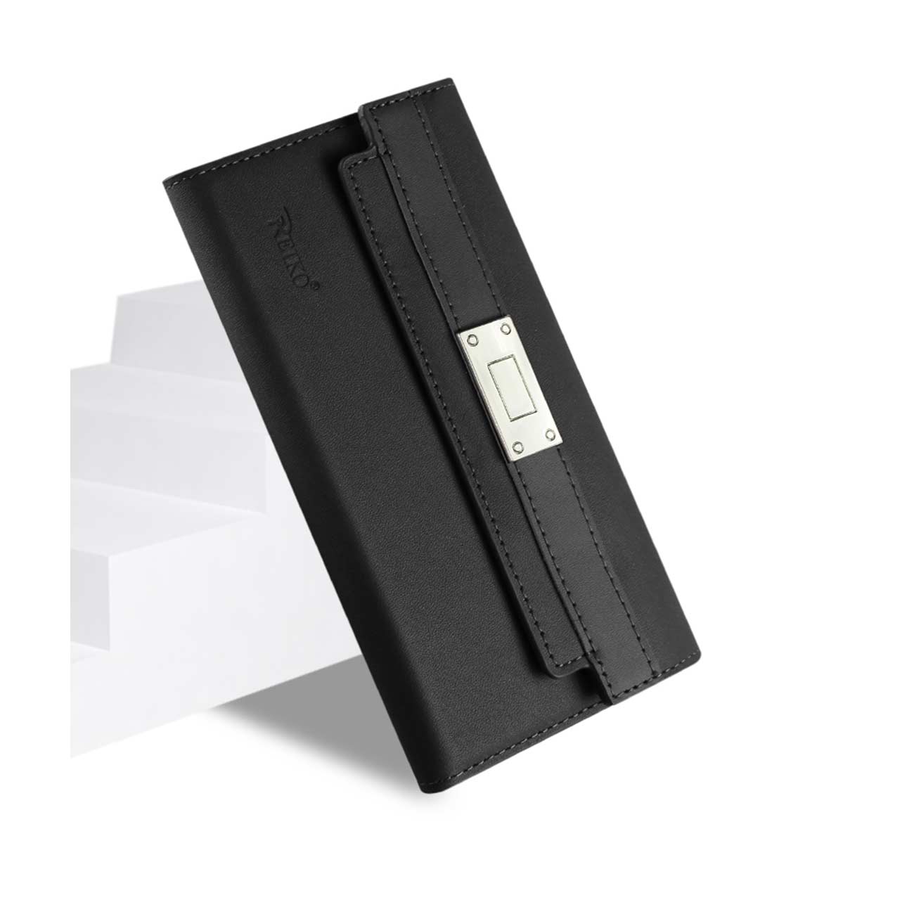 SAMSUNG GALAXY NOTE 5 GENUINE LEATHER RFID WALLET CASE AND METAL BUCKLE BELT IN BLACK