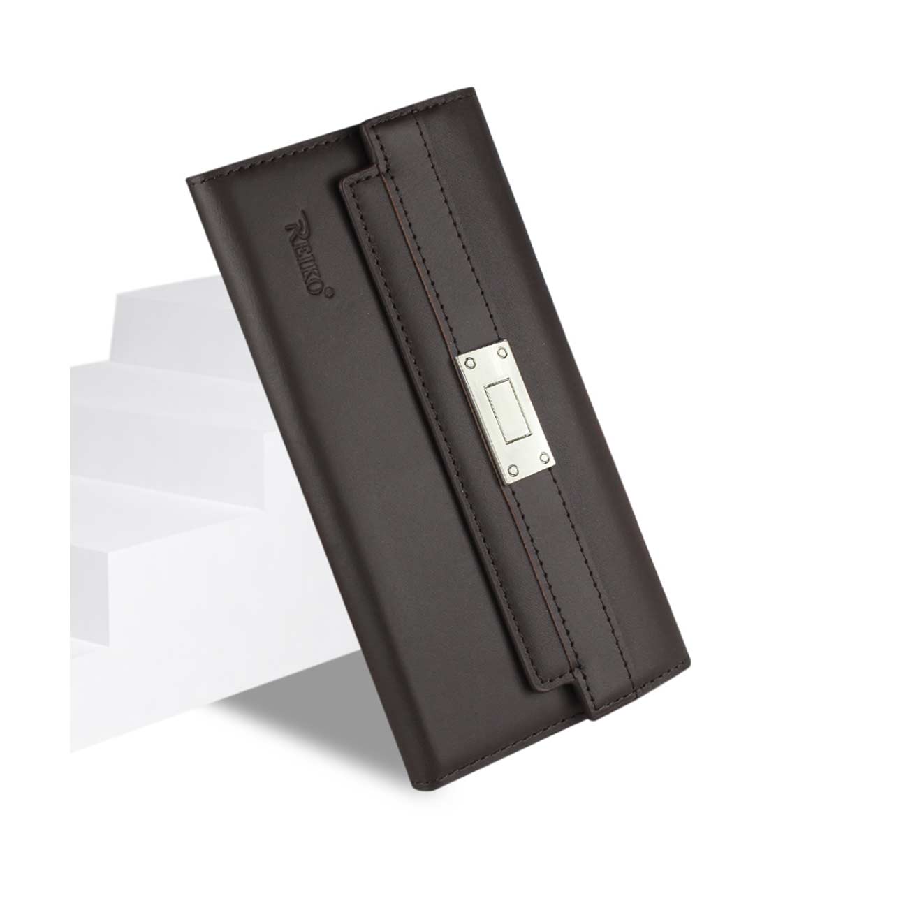 SAMSUNG GALAXY NOTE 5 GENUINE LEATHER RFID WALLET CASE AND METAL BUCKLE BELT IN UMBER
