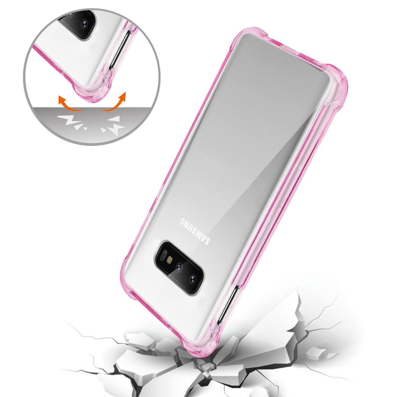 SAMSUNG GALAXY S10 Lite(S10e) Clear Bumper Case With Air Cushion Protection In Clear Hot Pink