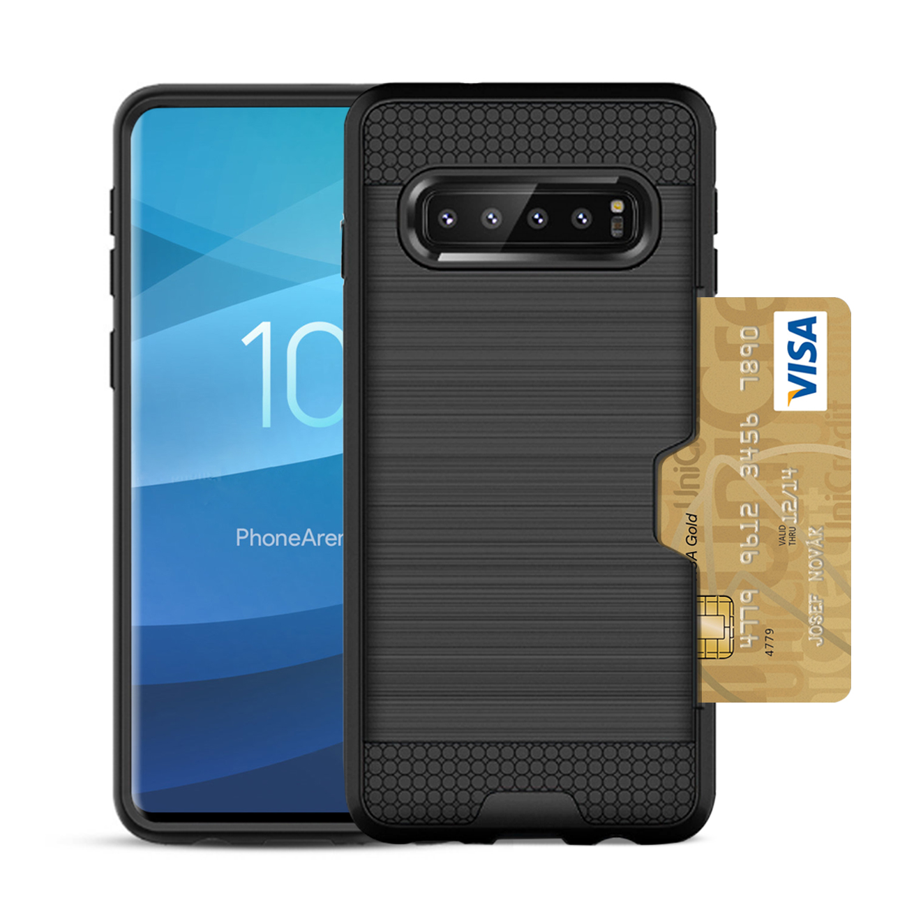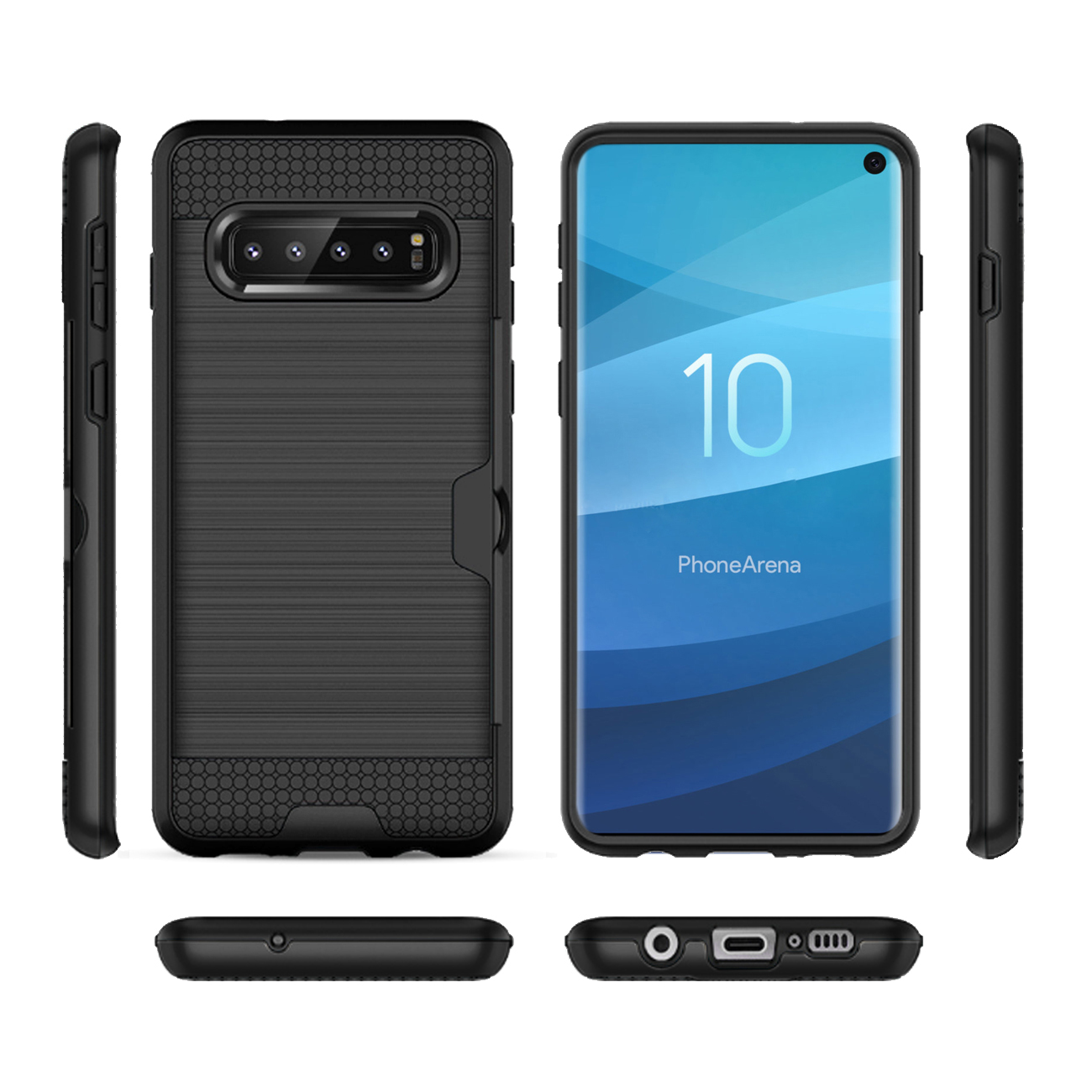 Dual layer hybrid with card HOLDER.Slim armor case can fit almost anywhere.Made with open slot on the back of the case to store personal card.easy to slide In and out of pocket.Well cutout for buttons and audio plug great protection.This phone model is also known as Samsung Galaxy S10.