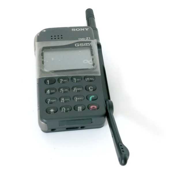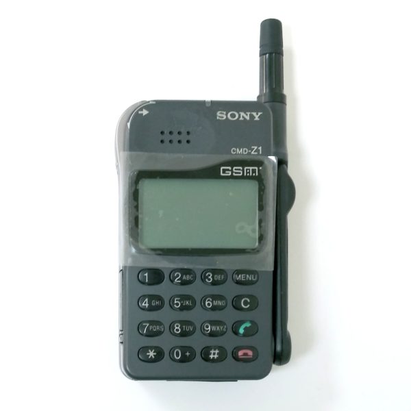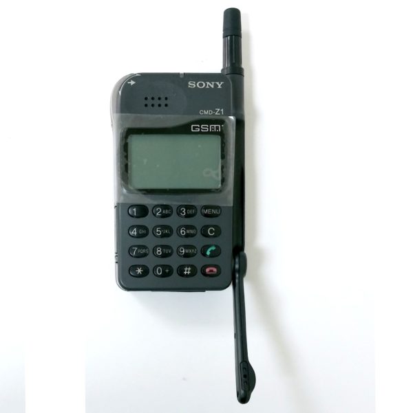Sony’s One Of Very Earliest Innovation. Released in the market in the year 1997. A Very Very Rare Collectors Item. This is a cellphone with Single GSM Band, GSM 900Mhz Only. Size is about 99 x 64 x 24 mm, Or (3.90 x 2.52 x 0.94 in) and Weight 220 g (7.76 oz). A Simple Basic Bar Phone. Only does Text and Calls. Small & Durable. Black & White Screen. Smooth Key Buttons. Solid Build Body. Unusual Curved design. Flip Down Mic. External antenna for Better Signal Reception. Rotary Push Button.(Top Left Corner of the Phone).