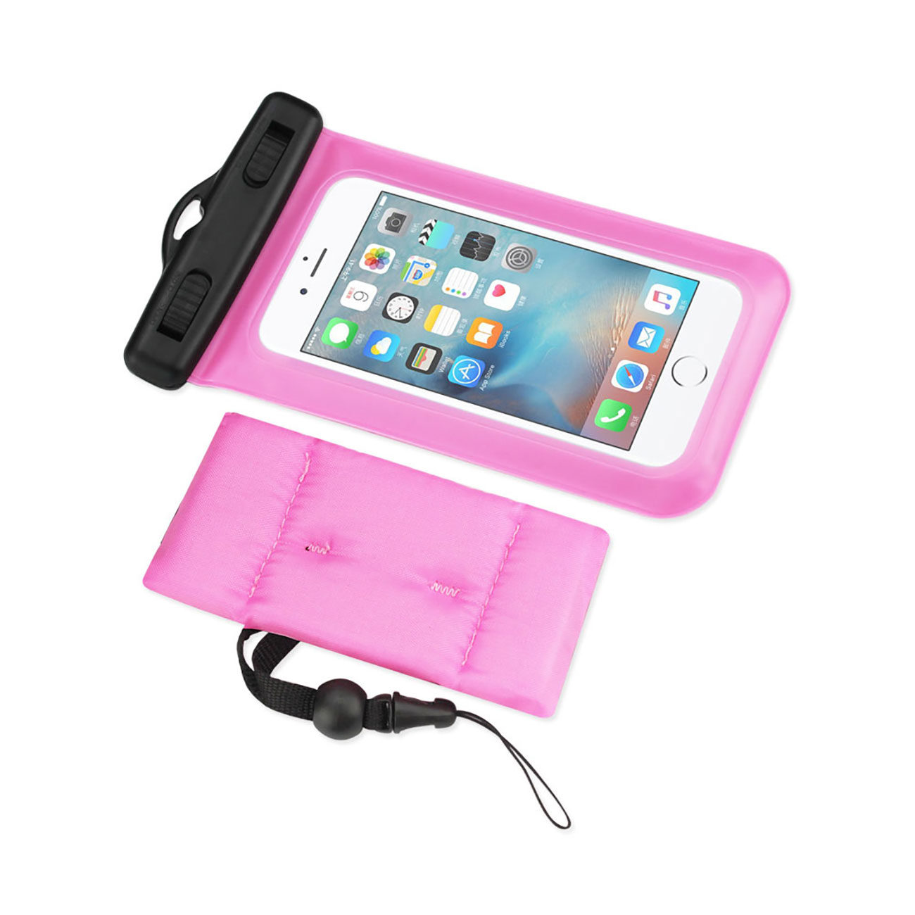 WATERPROOF CASE FOR 4.7 INCHES DEVICES WITH FLOATING ADJUSTABLE WRIST STRAP IN HOT PINK