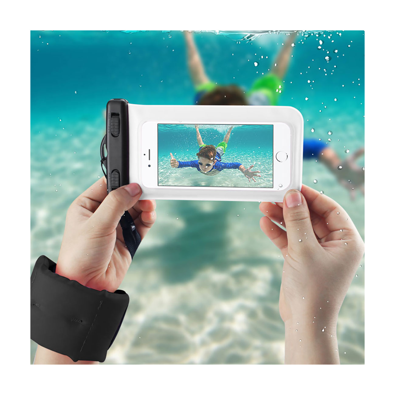WATERPROOF CASE FOR 4.7 INCHES DEVICES WITH FLOATING ADJUSTABLE WRIST STRAP IN WHITE